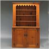 Country Pine Step-back Cupboard, 19th century, the molded cornice and shaped apron over open shelved top section, lower section with two paneled doors revealing three interior shelves, ht. 81 1/2, wd. 50 1/2, dp. 19 3/4 in.