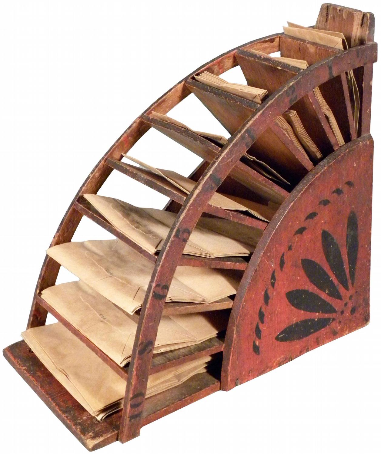 Country Store Bag Holder. Original red/black stenciling. Good original condition. 16 X 15 X 8 inches.