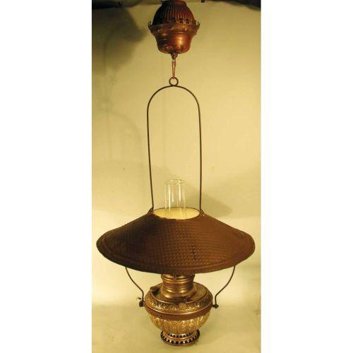 Country Store Ceiling Lamp number 3 Mfg. by Banner with ornate copper counter weight. Excellent condition. 45 inches tall X 20 inched diameter.