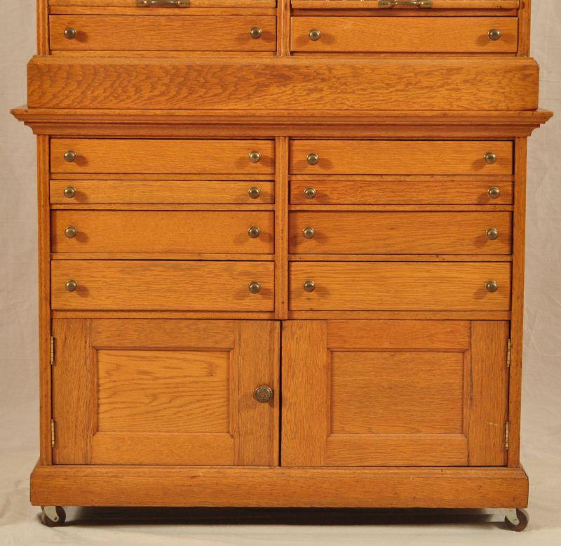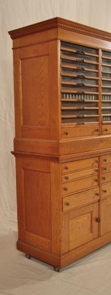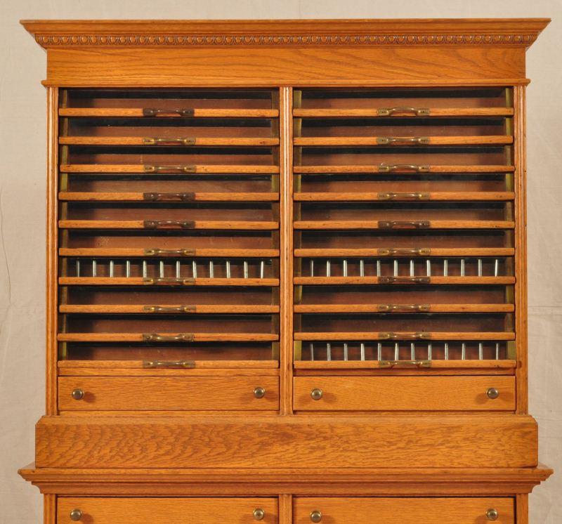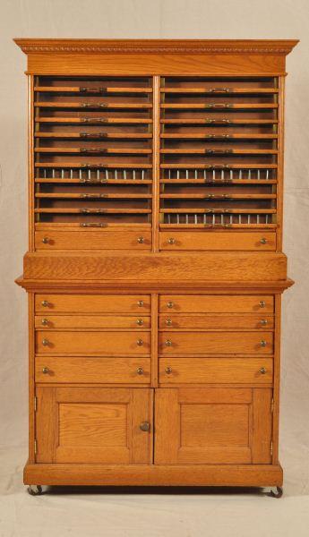 Two Piece Oak Spool Cabinet, Measures 17" x 36" x 59"