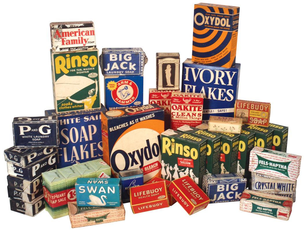 Country store soaps (40 pcs), Rinso, Oxydol, White Sail, Ivory, Arm & Hammer, Oakite, Big Jack, P&G,