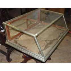 Country store table top display case. Measures 11 1/2" tall, 33 1/2" wide, and 25" deep.