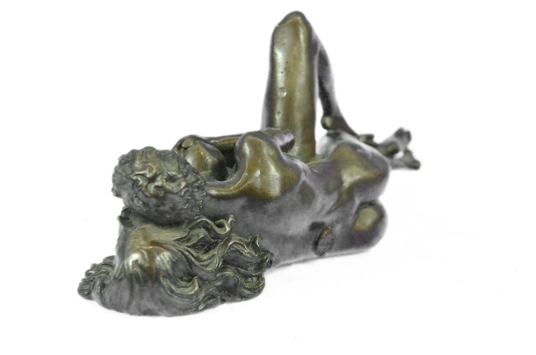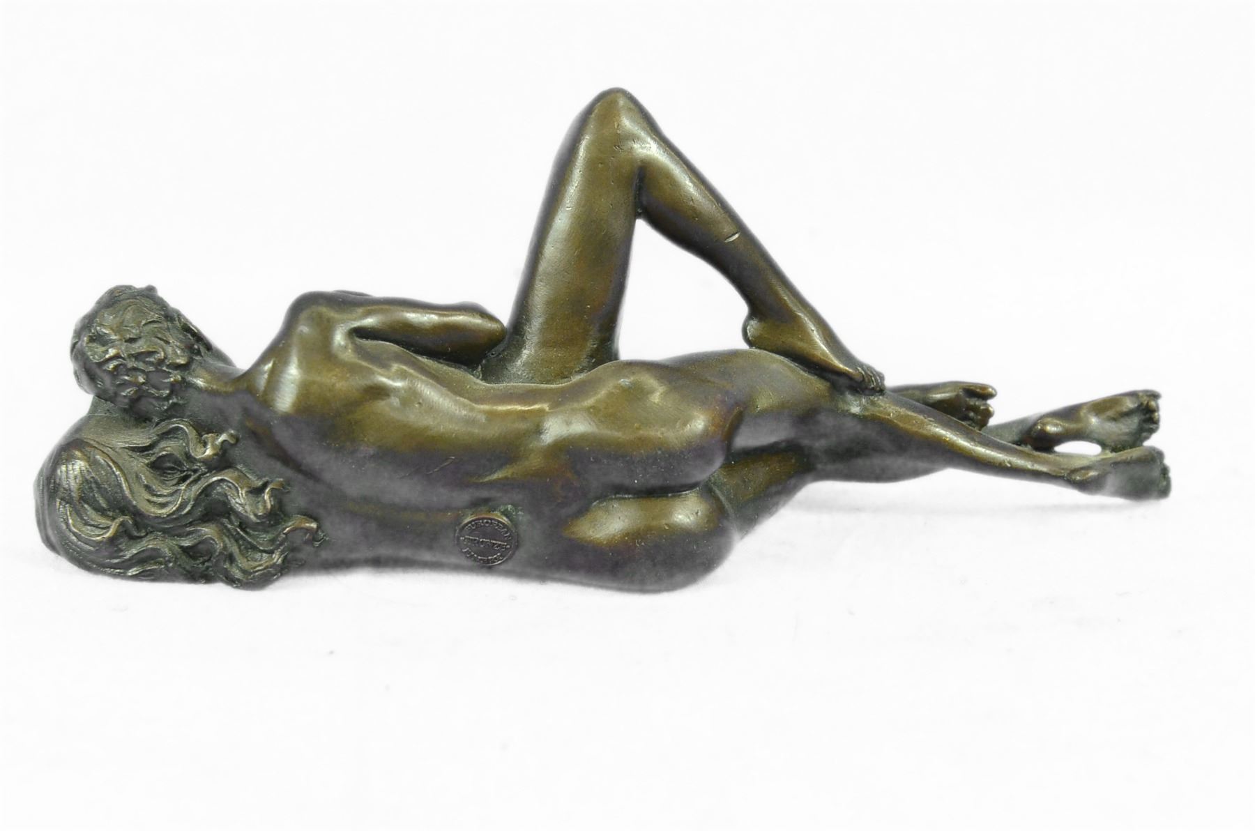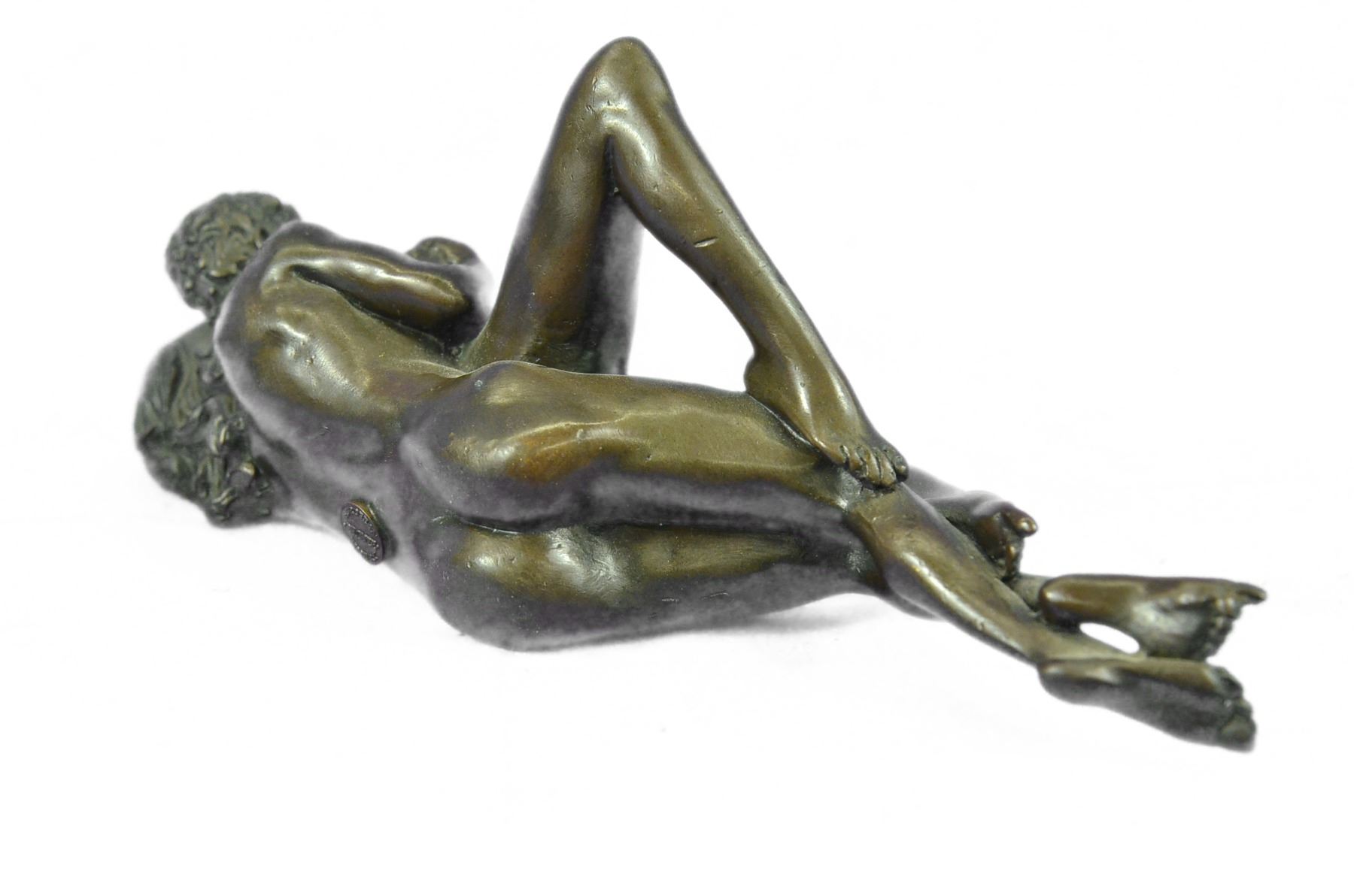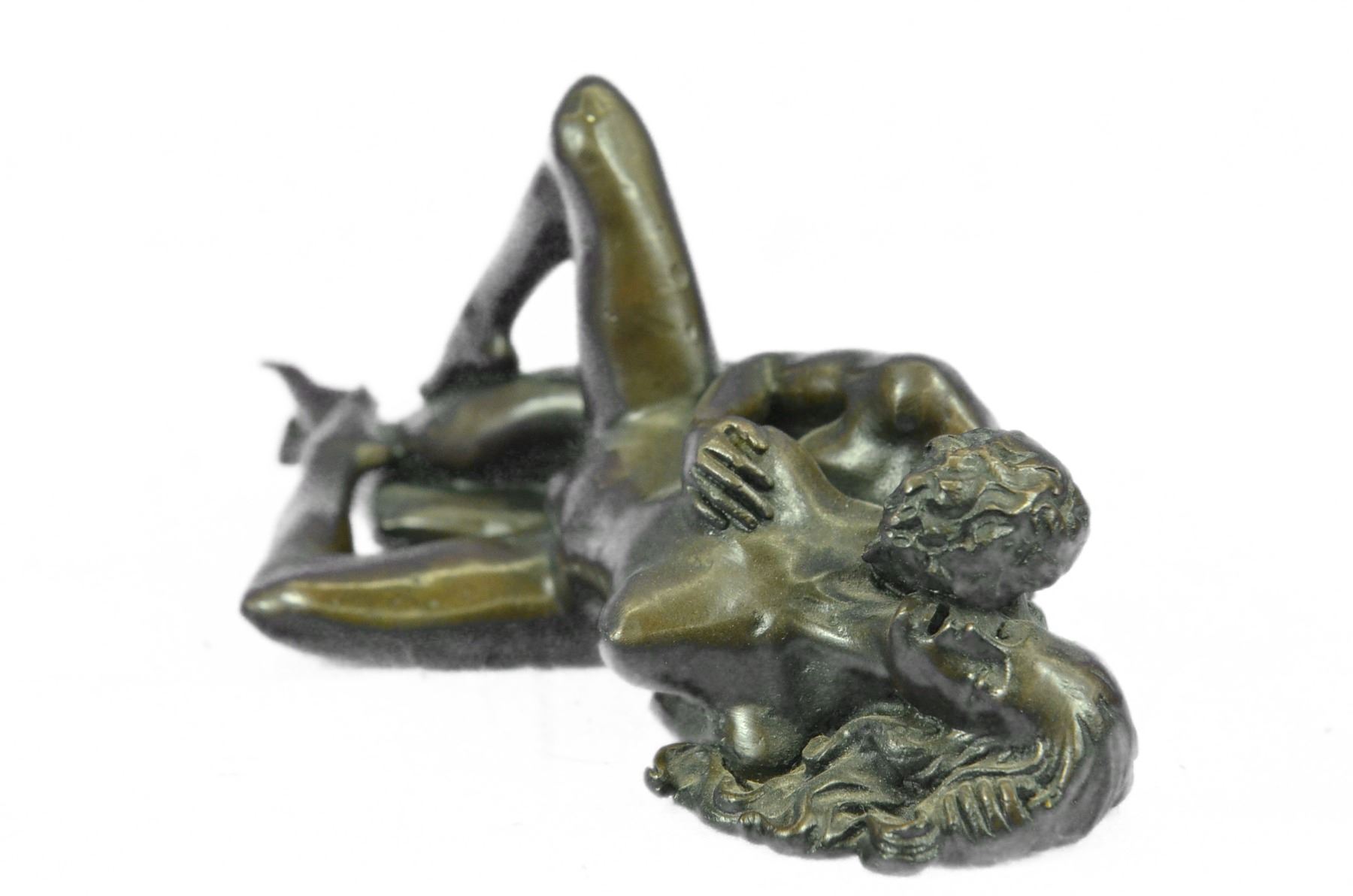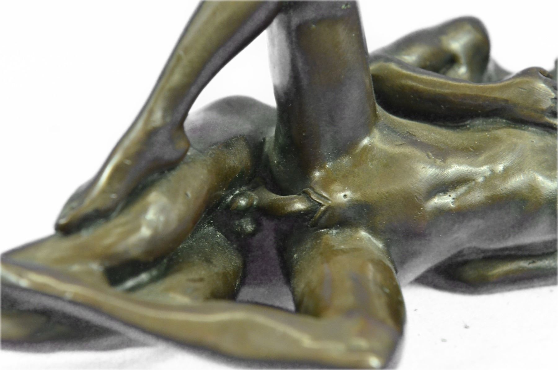 This highly erotic figurine features a male and female in a very evocative pose. The femaleand male lay on there side as if they were spoonign, while the man penetrates her from behind. He rests his hands on her breast while she places both arms behind her.Judging by their facial expressions, one can readily see that they are enjoying their activity. This piece is definitely a great conversation starter and would make a great gift for yourself or for someone who likes to be amused or appreciates nude sculptures. Despite its subject matter, this bronze sculpture is still a masterful and fine detailed execution, cast using the lost wax method, ensuring a highly detailed work of art that will be a treasure for years to come. The handmade bronze sculpture was cast using the archaic method of lost-wax casting and stained with a brown patina finish for perpetuation. Bronze Dimensions: Height 4 X Width 8 inches. Weight: 4 LBS. Inventory: 35ST0233853