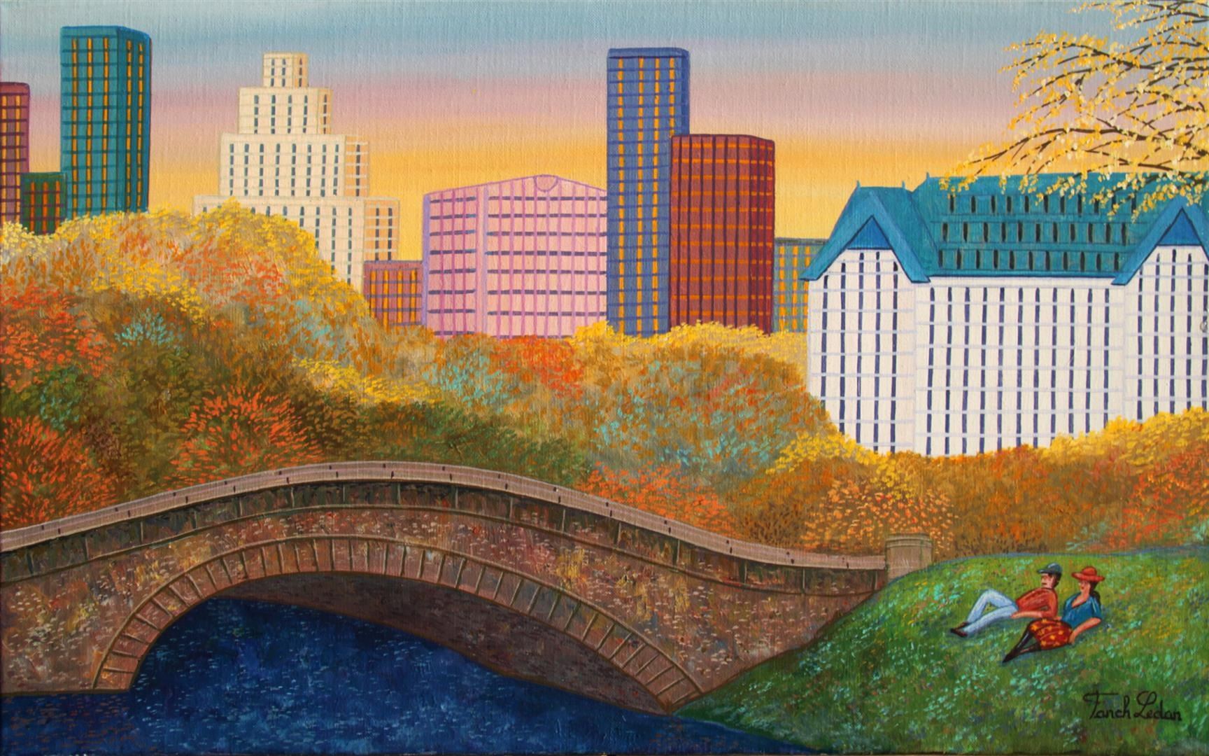 A walk thru the park in 13x21.75", a stretched acrylic canvas by French artist Fanch Ledan ; with COA.