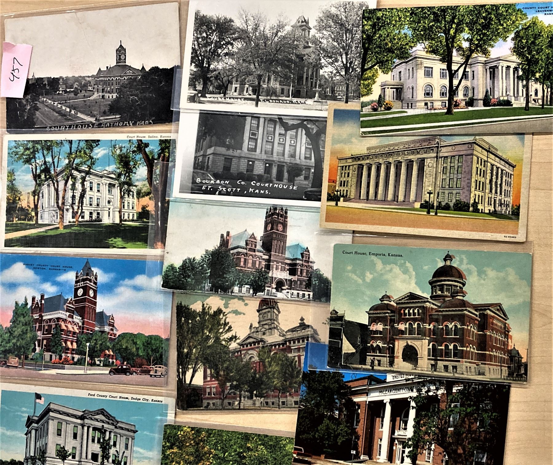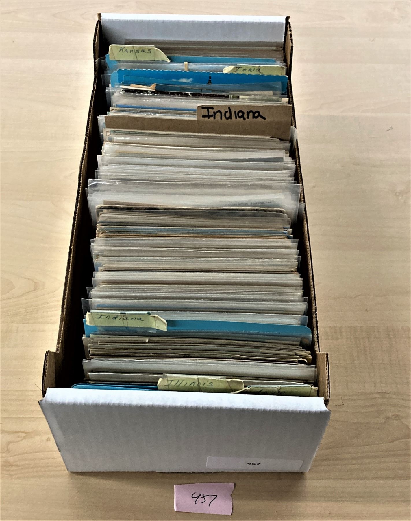 Box of court houses sorted by states. Illinois to Kansas. Early to standard size chrome.