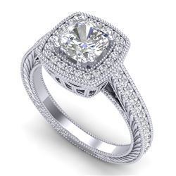 1.77 CTW Cushion VS/SI Diamond Solitaire Art Deco Ring 18K White Gold ---- Luxury Designer Brand Ring Appraised Retail Price at $19,600 ---- SKU Numb