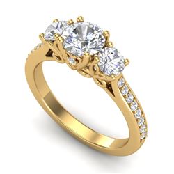 1.67 CTW VS/SI Diamond Solitaire Art Deco 3 Stone Ring 18K Yellow Gold ---- Luxury Designer Brand 3 stone ring Appraised Retail Price at $17,050 ----