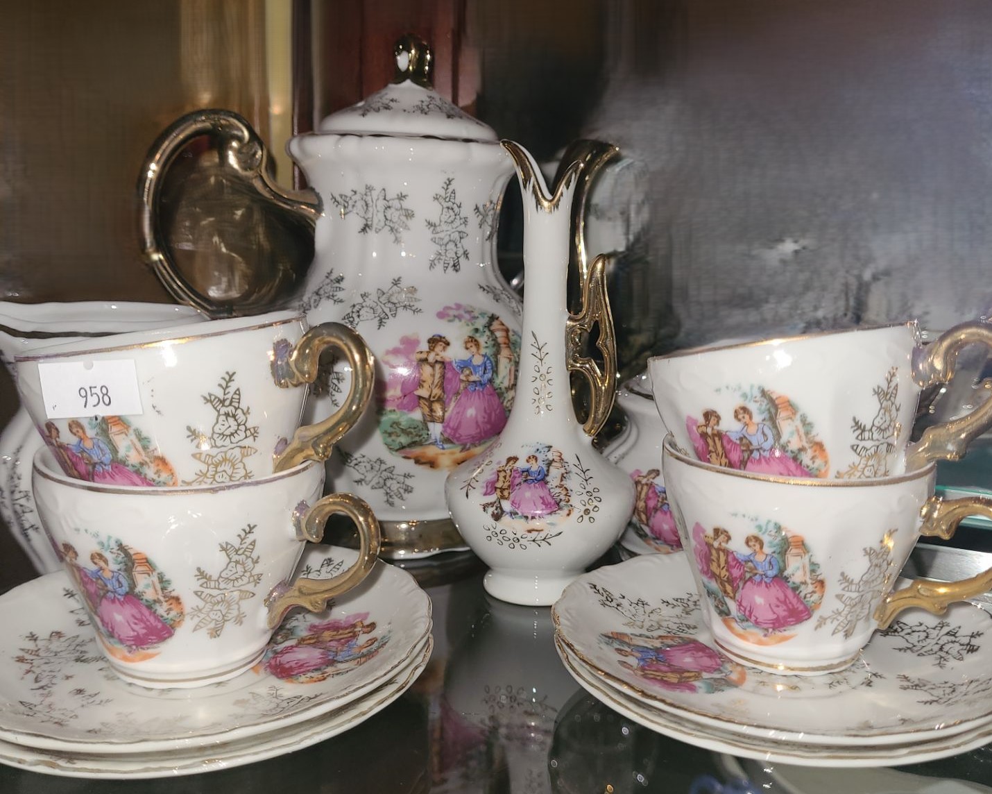 Courting Scene Tea Set Made in Japan Includes: Teapot, Cups, Saucers, Vase