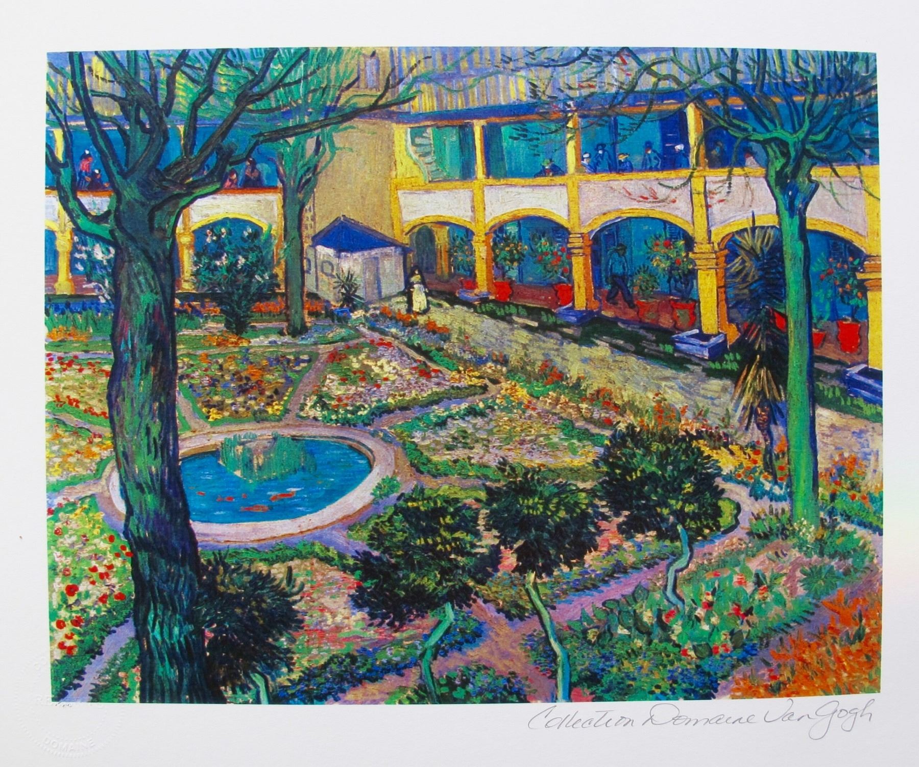 Courtyard of the Hospital at Arles by Van Goh Estate Signed Giclee