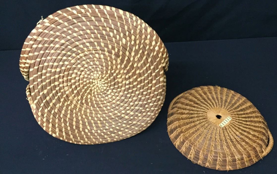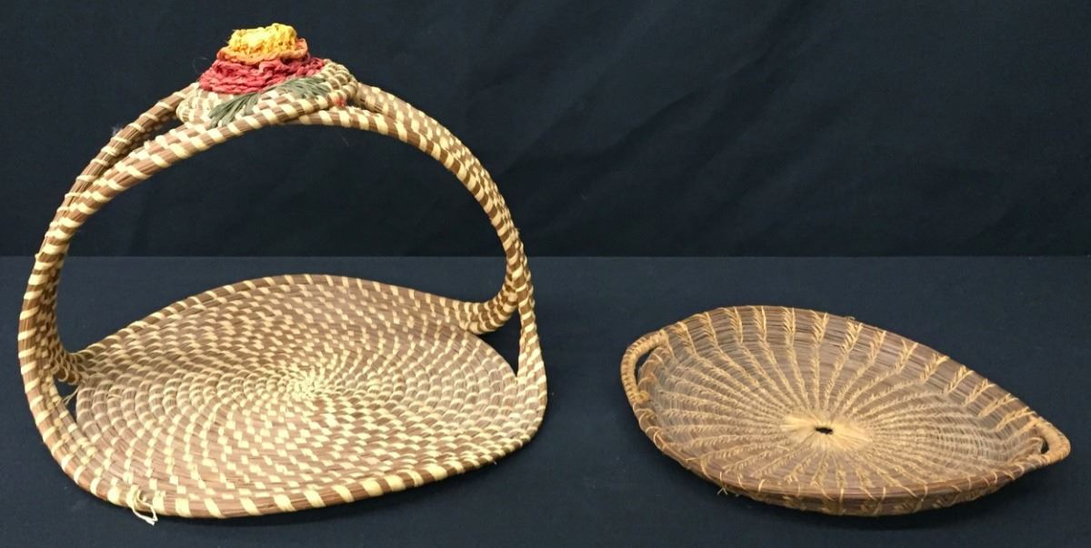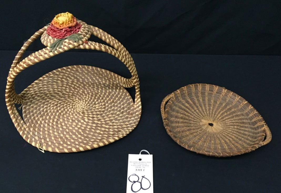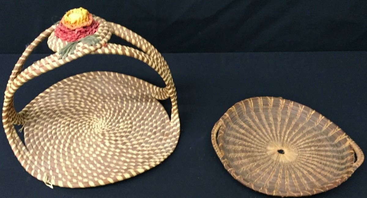 You get both vintage baskets for 1 money! The smaller tray is approx. 10” across. The other one with a handle is 12” across by 9” high. Please look closely at the pics as they are an important part of our description. Shipping: There will be a $7 handling / packaging fee for shipping this lot. The actual cost of postage will be added on top of that.