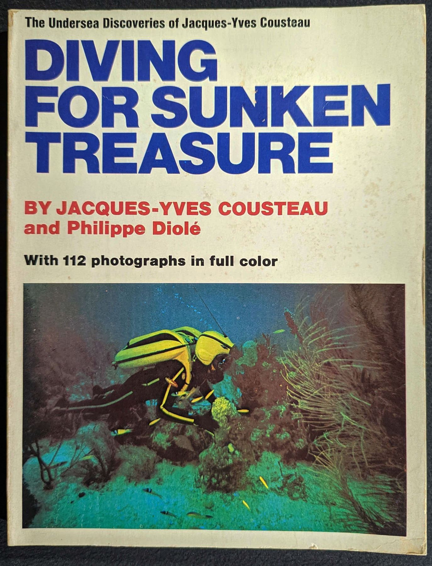 Cousteau, Jacques-Yves. DIVING FOR SUNKEN TREASURE. A&W Publishers. 1971. 8vo. 302, (2) pages. New York. first paperback edition. original pictorial card covers. over 120 illustrations and photos. Very Good. In this book, Jacques-Yves Cousteau describes his own expedition to the famous Silver Bank, a coral reef in the Caribbean, where the crew of the Calypso searched unsuccessfully for a centuries-old shipwreck, the sunken Spanish galleon, "Nuestra Senora de la Concepcion", for the secrets of its past and the fortune in silver and gold it might still contain with references to William Phips' prior salvage efforts. Persistence and the latest technologies in marine archaeology enabled them to unearth an unidentified shipwreck's remnants, almost completely concealed by the myriad life forms of tropical waters. Lot weight: 1 lbs 6oz. Subject(s): Sunken Treasure.