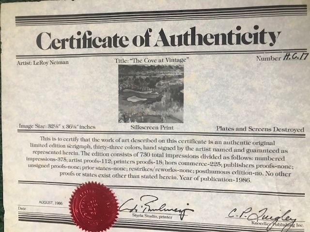 "Cove at Vintage" by LeRoy Neiman (1921-2012) - Hand signed limited edition serigraph HC (Hors Commerce = Out of Trade) #17 of 225 - Includes Certificate of Authenticity - Framed size = 50" wide x 48" tall