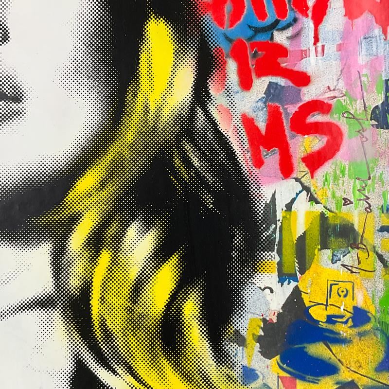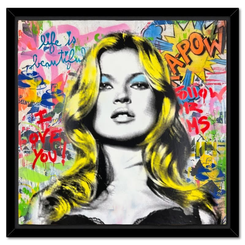 "Cover Girl" is a mixed media original on deckle edge paper by Mr. Brainwash, hand signed and bearing the thumbprint of the artist inverso. This piece comes custom framed. Includes Certificate of Authenticity. Measures approx. 28" x 28" (frame), 24" x 24" (image).