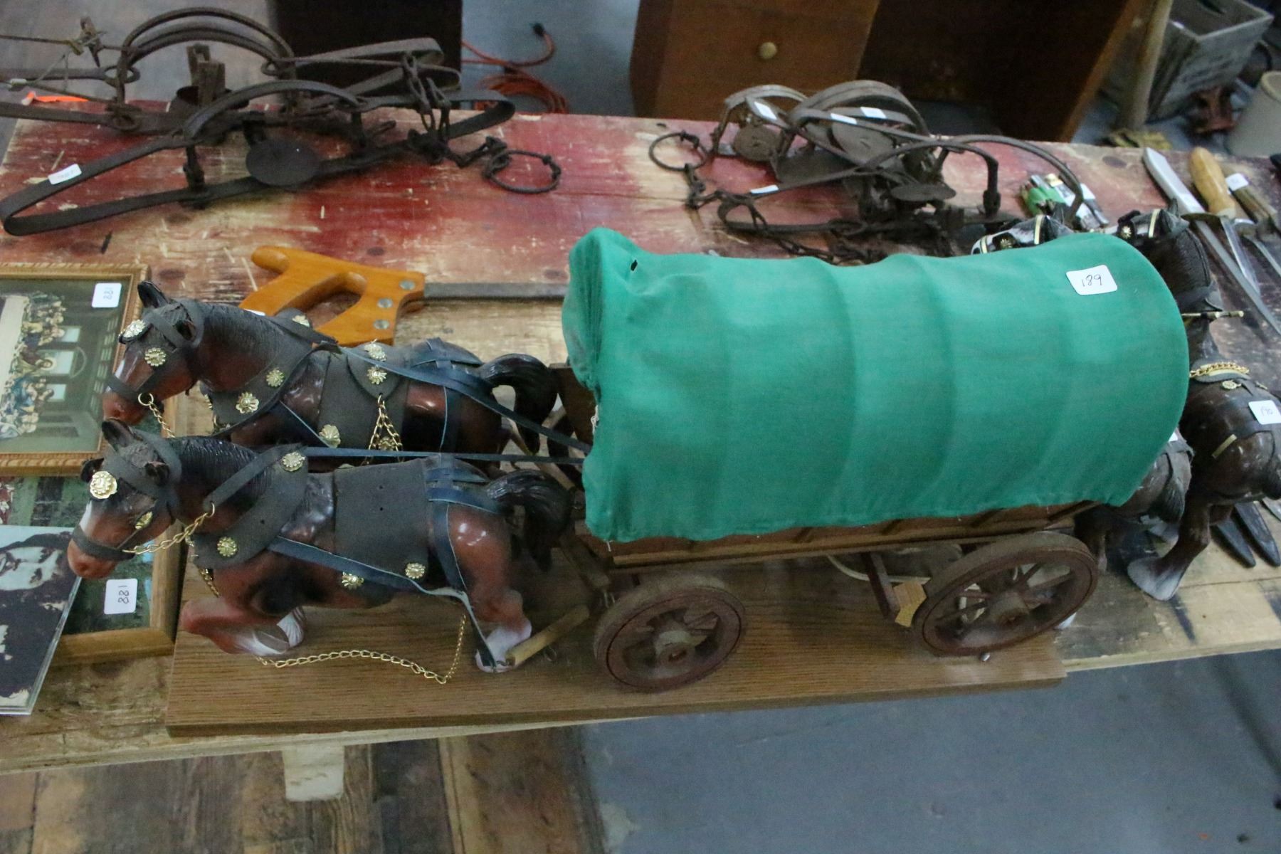 Covered Wagon (Needs Front Wheel Repair) & a Two Horse (Clydesdales)Team
