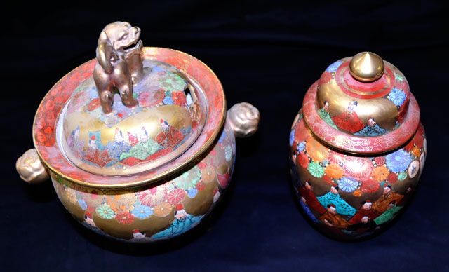 Jade censer has "Foo Dog" on cover. Covered jar depicting "People in Everyday Life". From a Sutton Place, NYC estate. Please read our terms of sale.