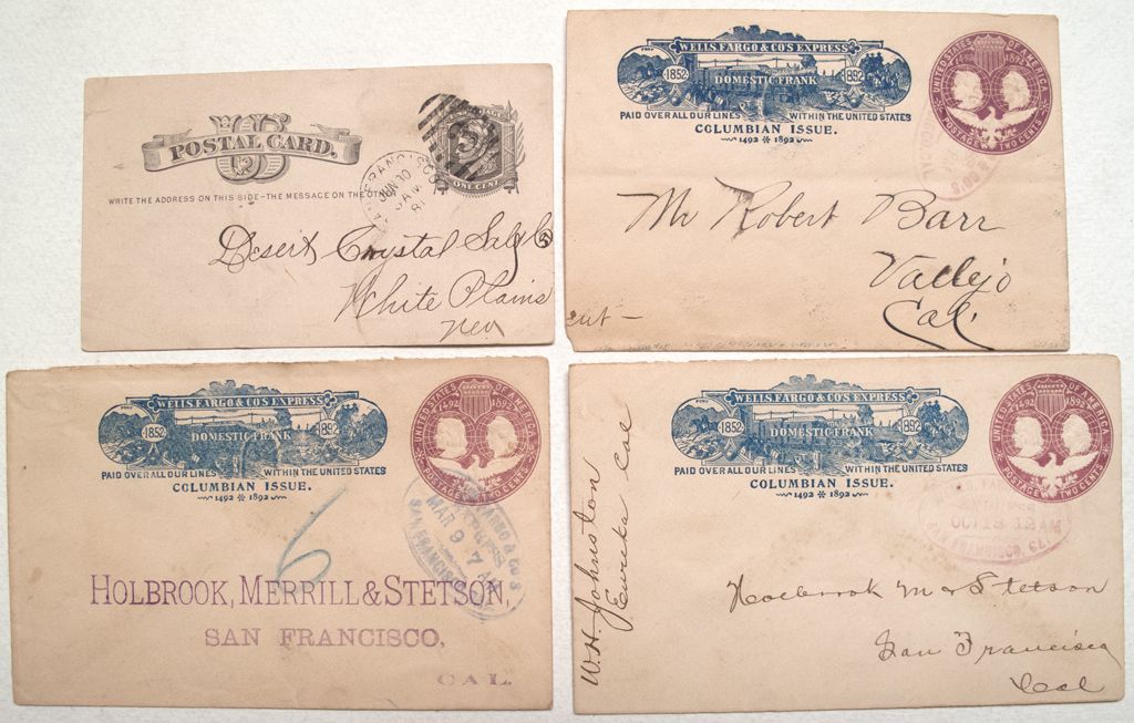 Four pieces. Three covers from Columbian Issue, 1492-1892, and one post card dated 6/29/1881
