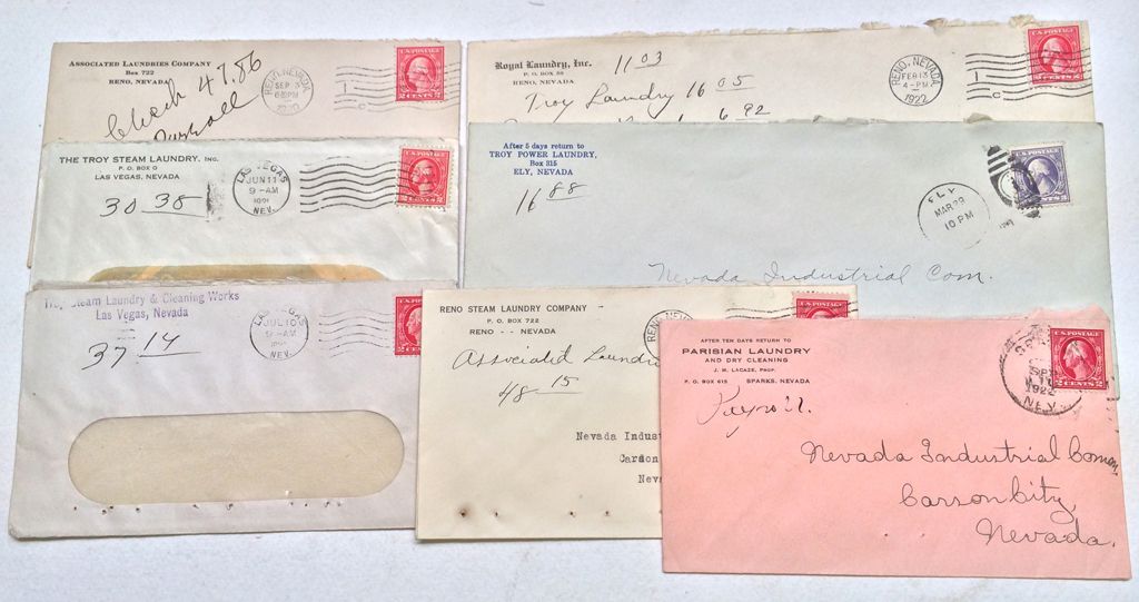 Lot of seven. Includes Parisian of Sparks, Reno Steam, Associated Laundries of Reno, Troy Power Laundry of Ely, Troy Steam Laundry of Las Vegas, and Royal Laundry of Reno.