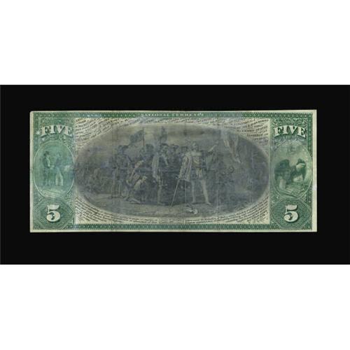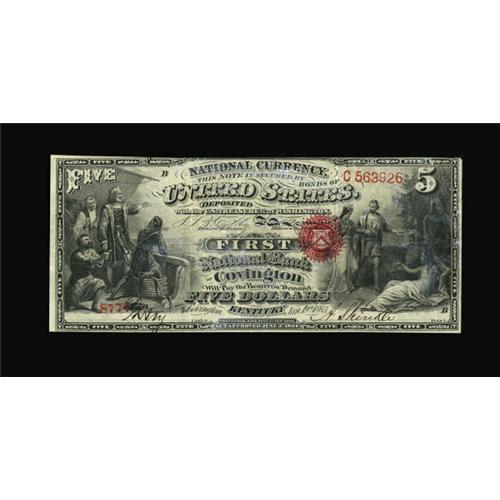 <B>Covington, KY</B></I> - $5 Original Fr. 397 <B>The First NB</B></I> Ch. # 718<BR> The only Original $5 known from this Kenton County issuer across the river from Cincinnati. The print is quite dark and signatures strong though pinholes have infiltrated the surface. A coating of some substance has been applied in an attempt to fill them. The back is a touch faded. <B>Fine-Very Fine.</B></I><BR><BR><b>Shipping:</b> Coins & Currency (<a target="_blank" href="http://www.heritageauctions.com/common/shipping.php">view shipping information</a>)