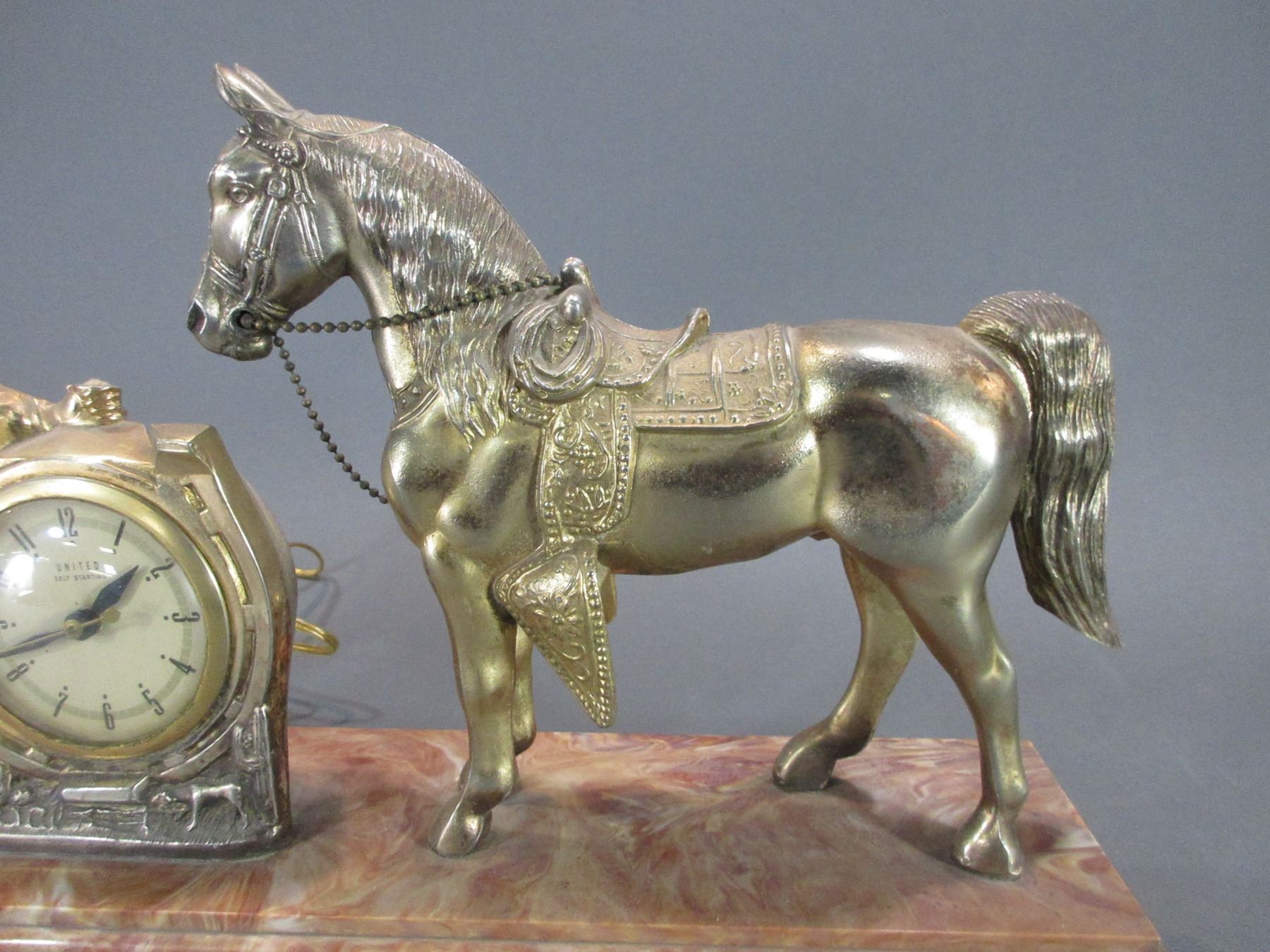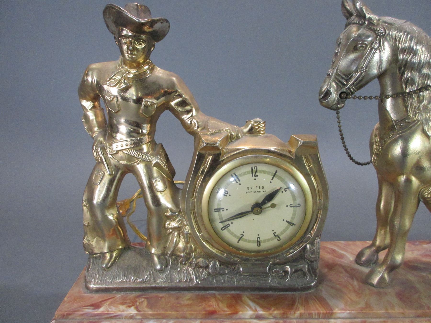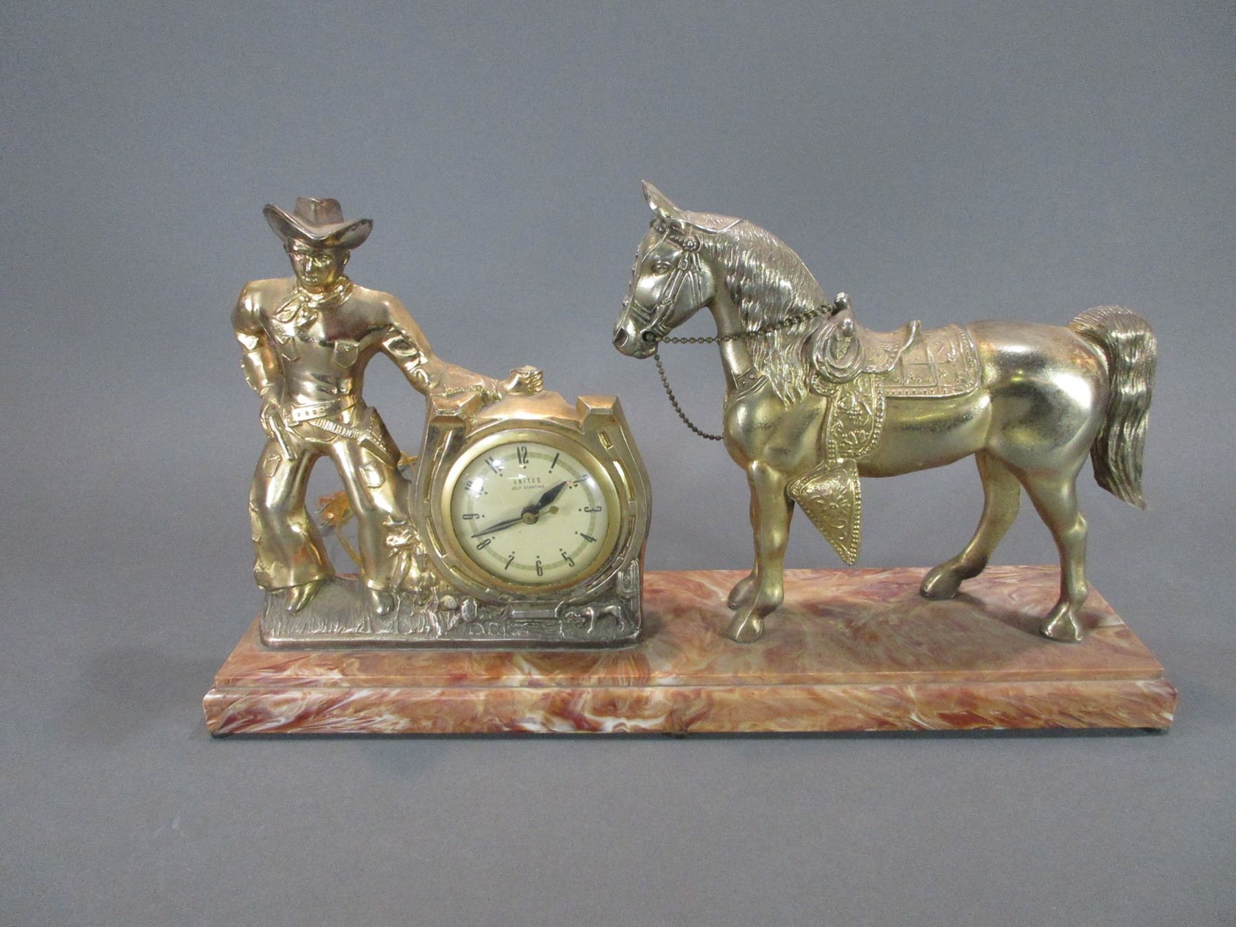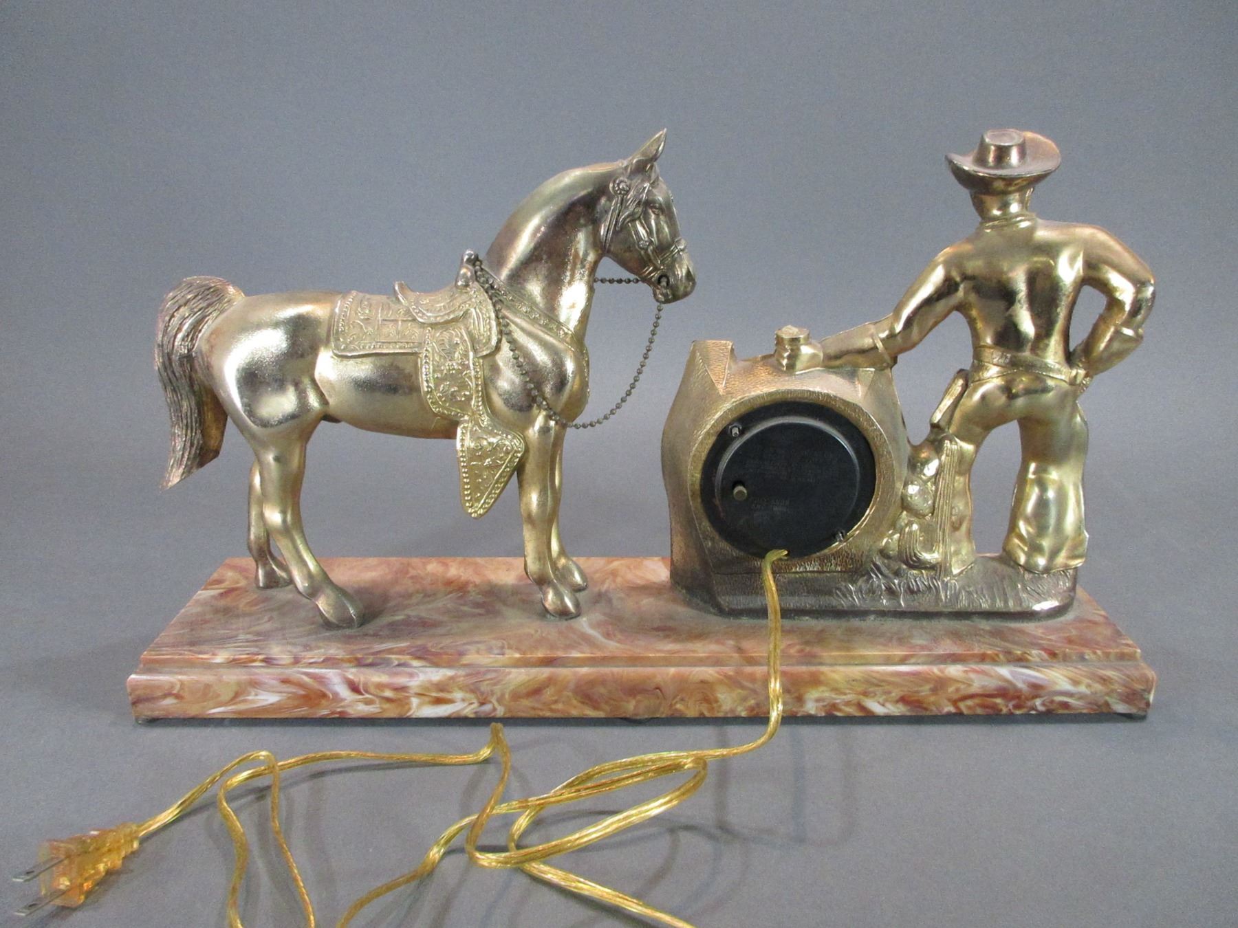 Cowboy And Horse Clock- Works- 11.5"H X Base 20.5" X 5"