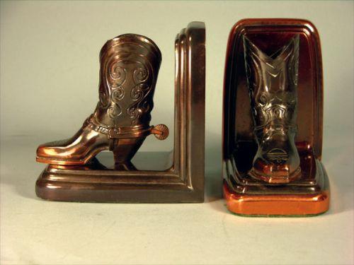 Cowboy Boots Bookends, copper oxidized. Made by the Trophy Craft Company LosAngeles, CA. Excellent condition. 5 inches tall.