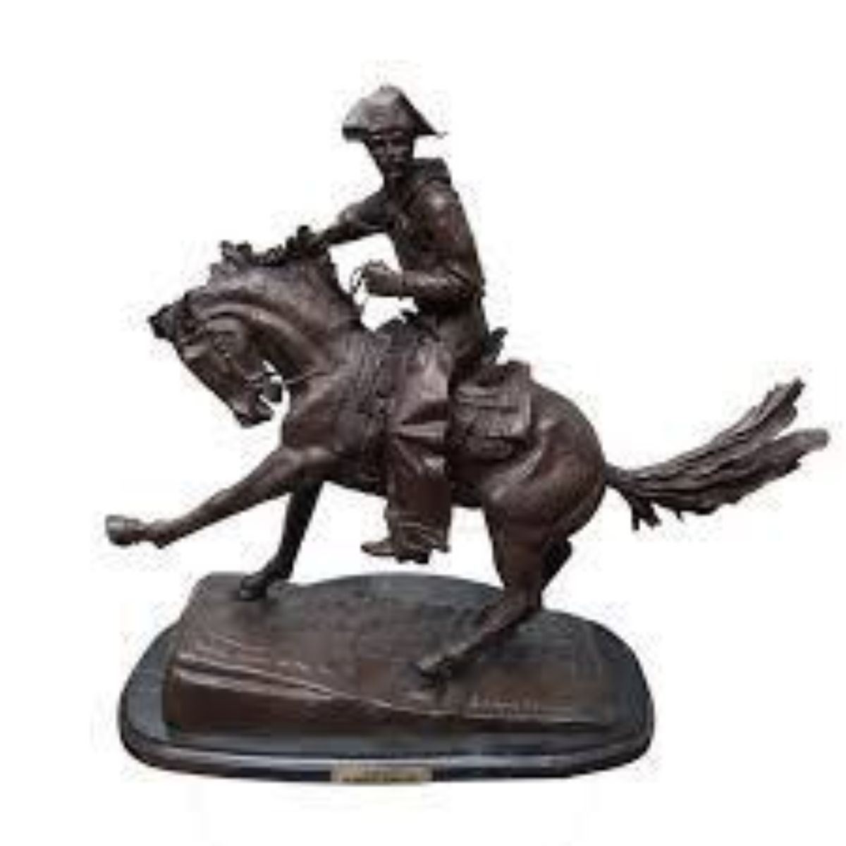 Regular 12 1/2" H x 14" L - This is not an original Frederic Remington sculpture for if it was, it would be worth a great fortune. This is a masterful lost-wax bronze molded sculpture masterfully recreated in the Frederic Remington style. There are many steps in this intricate process. If interested, you may read about this process here: https://en.wikipedia.org/wiki/Lost-wax_casting