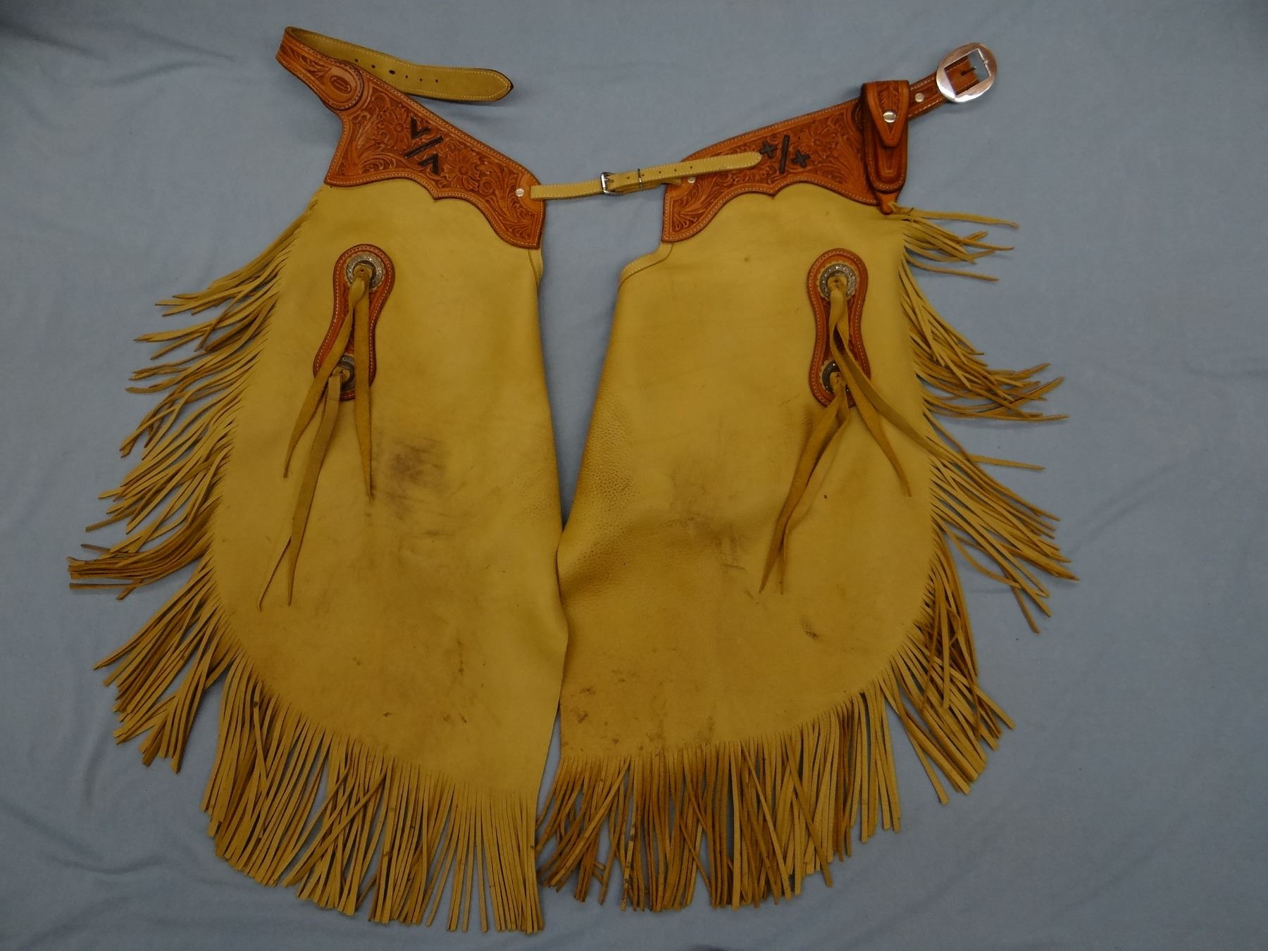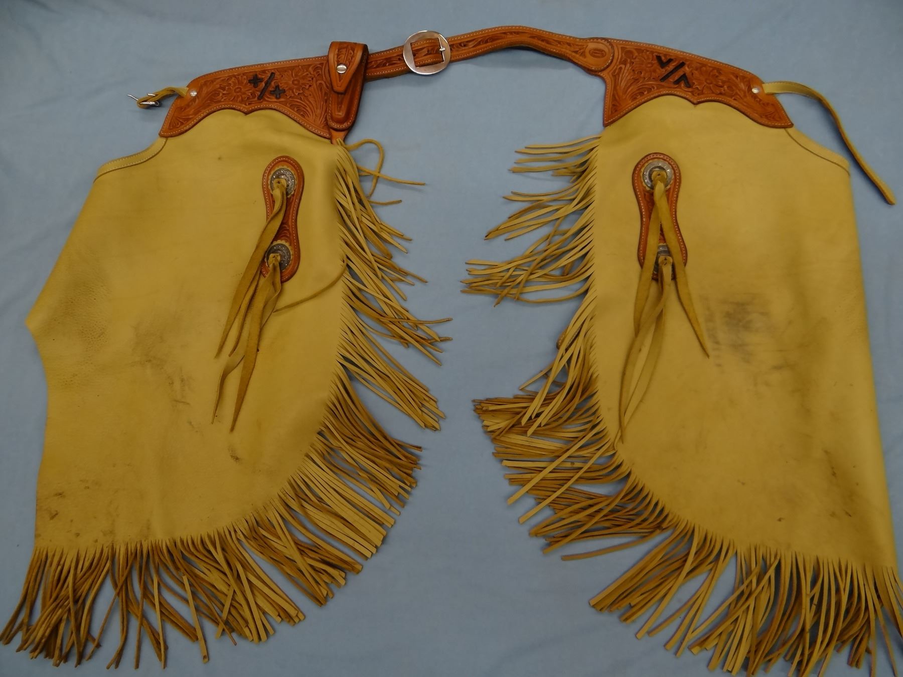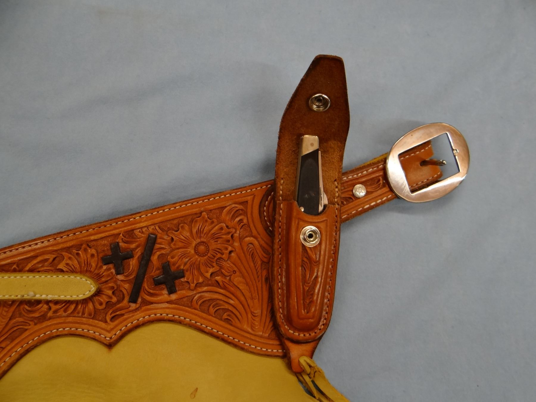 Made by Swanke Saddle Co, Billings, MT. Feature the V-slash-Open A and Cross-Slash-Cross brands on yoke, w/ knife sheath, floral tooling