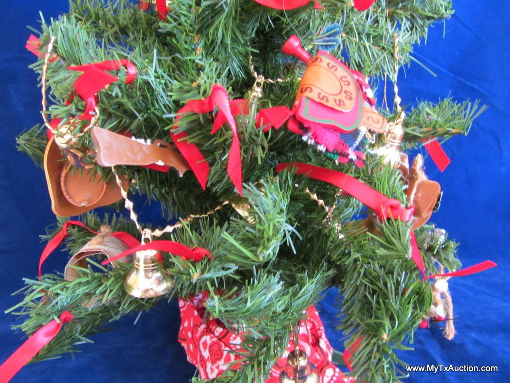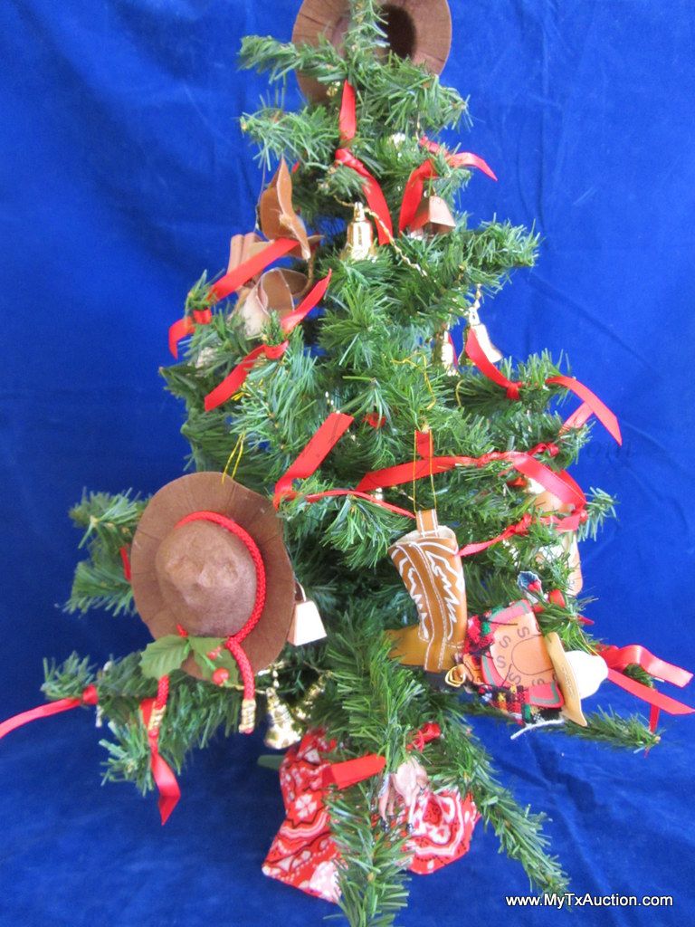 2 foot fully decorated Christmas tree for the cowboy or cowgirl in your life. Decked out with hats, boots, saddles, even a cow/bull. A gun and bucking bronco just right for the themed holiday or a child's very on Christmas tree in their room.