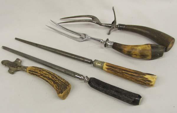 Cowboy Collection Of Horn Handled Utensils. Longest measures approx. 13'' x 1''. Buyers Pay Actual Shipping and Handling Charges(see terms and conditions for more information).