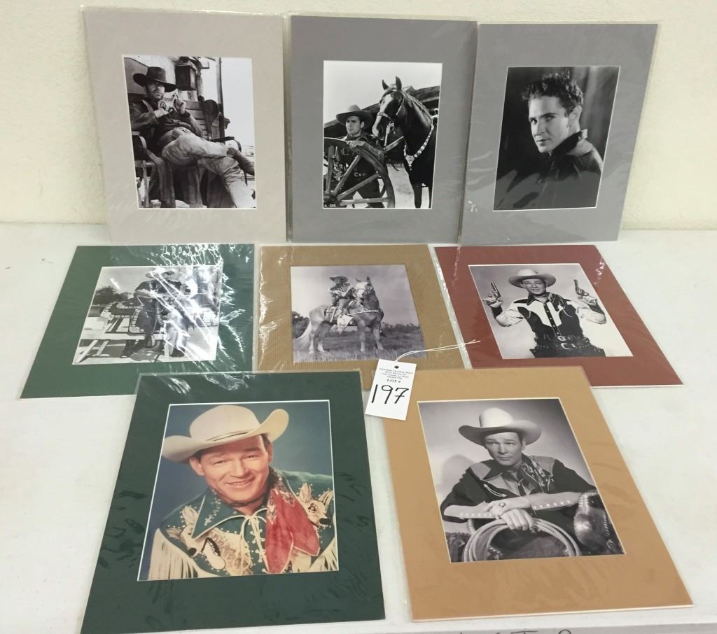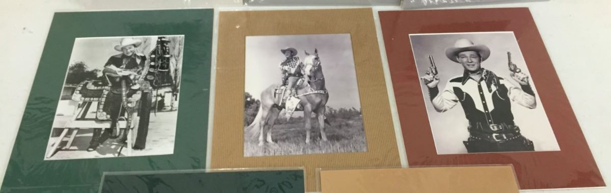 There are 5 Roy Rogers pictures, a Gene Autry and a Jack Elam. All are 11 x 14 including the matting. Please look closely at pics - they are an important part of our description. Shipping: There will be a $7 handling / packaging fee for shipping this lot. The actual cost of postage will be added on top of that.