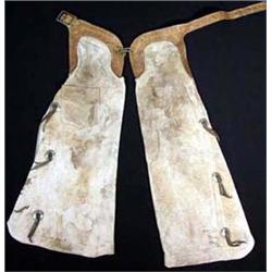 Cowboy Made Chaps with conchos & tooled belt. Show cowboy use. Estimate $300-$400.