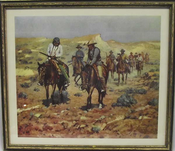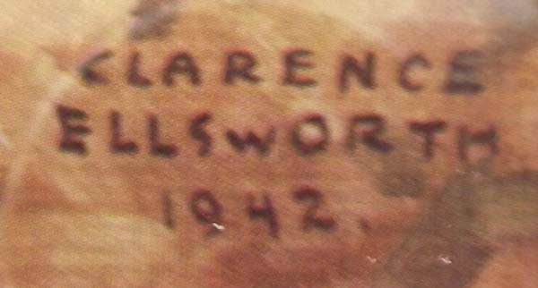 1942 Clarence Ellsworth Framed Print. Framed in a wood frame, under glass. Visual measures approx. 12''H x 14 3/4''W. Buyers Pay Actual Shipping and Handling Charges(see terms and conditions for more information).