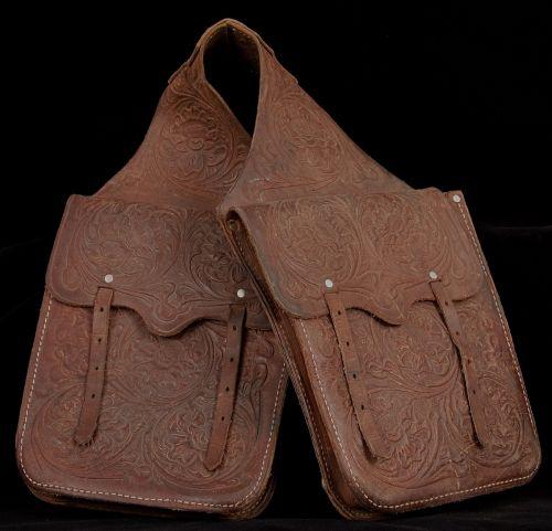 Cowboy Saddle Bags. Fully tooled. 9 ½” wide x 19" long. Fine condition, circa 1950. (est $300-400).