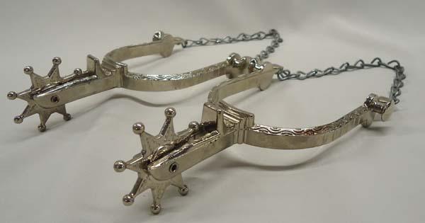 Cowboy Spurs With Sheriff Star Rowels. Measure approx. 6'' long, rowels measure approx. 1 3/4''. SHI $15.