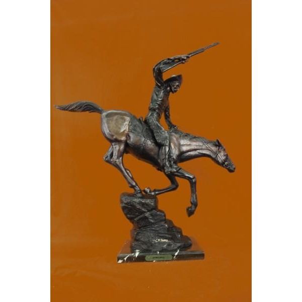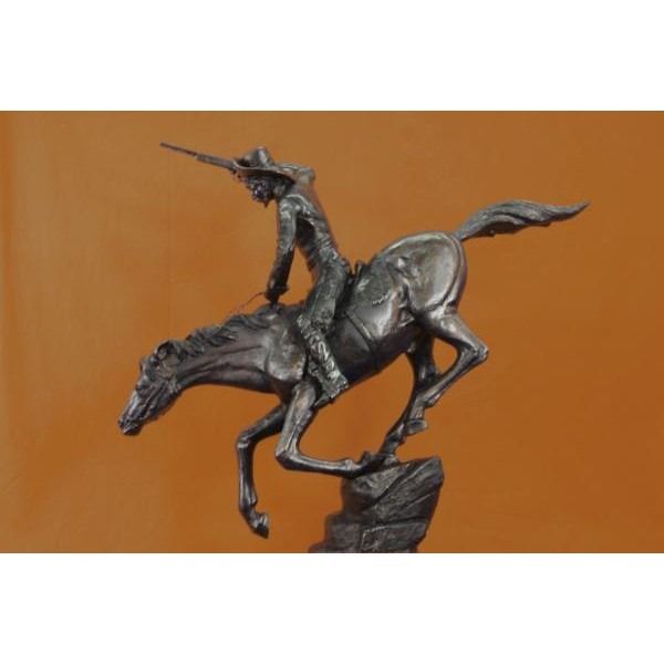 Remington Created Down Hill After Switching His Casting To Roman Bronze Works. Once Remington Started Using The Lost Wax Casting Process He Realized How Easy It Was To Manipulate Each Individual Wax To His Liking Making Each Casting With Different Characteristics. This Sculpture Is Very Appeasing To The Eyes Giving You Dimension, Depth And Captured Movement. This Sculpture Has So Many Details That Every Time You Look At It You Are Sure To Find Something New. This Sculpture Was Cast Using The “Lost Wax Method” And Has A Gorgeous Two Tone Brown Patina. This Sculpture Is Mounted On A Black Marble Base. Bronze Dimensions With Marble Base: Height 26 X Width 27 inches. Weight: 35 Lbs.Please Note: This is a reproduction bronze sculpture from the original molded and signed. This featured bronze sculpture is a recast after the original, and has been done recently. This 100% bronze sculpture is an abstract piece certain to be a conversation piece.Please Note: This is a reproduction bronze sculpture from the original molded and signed. This featured bronze sculpture is a recast after the original, and has been done recently. This 100% bronze sculpture is an abstract piece certain to be a conversation piece.