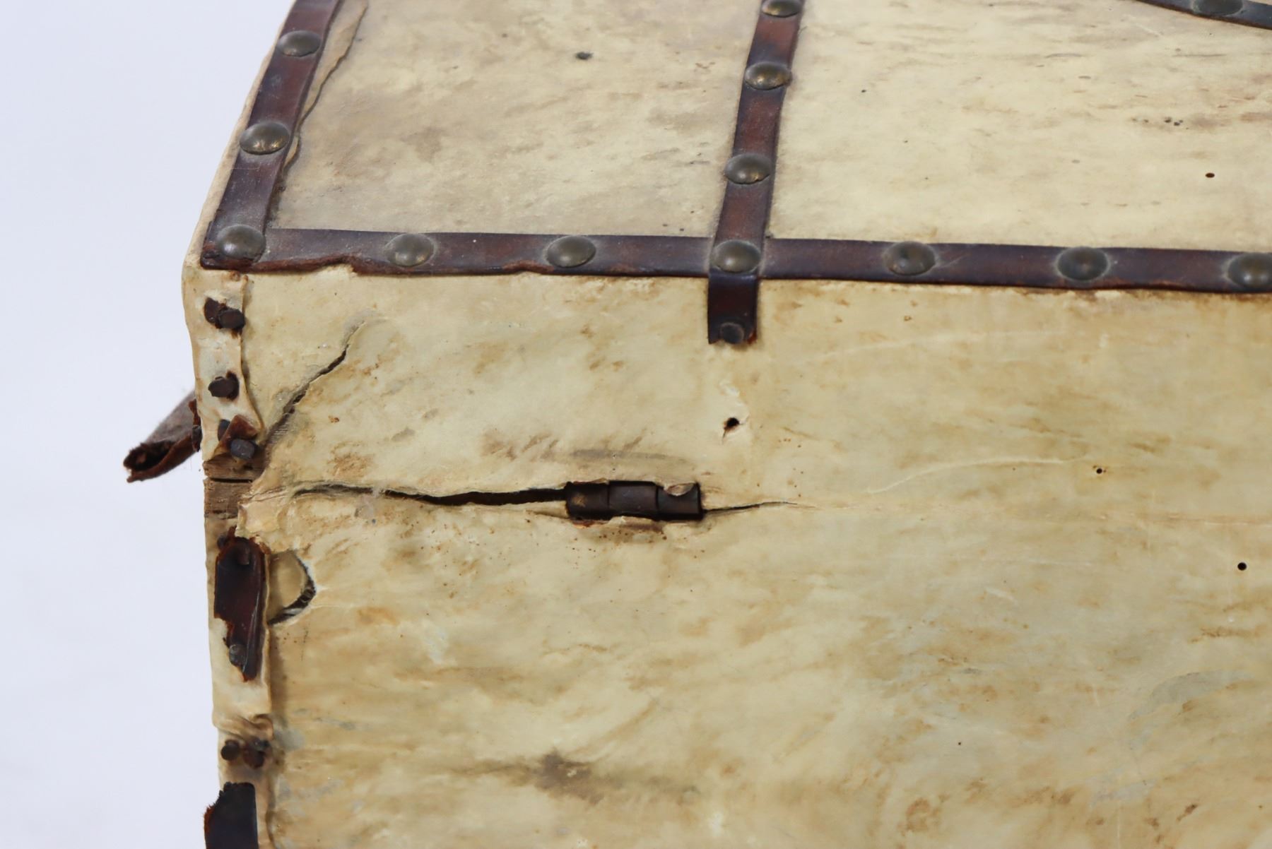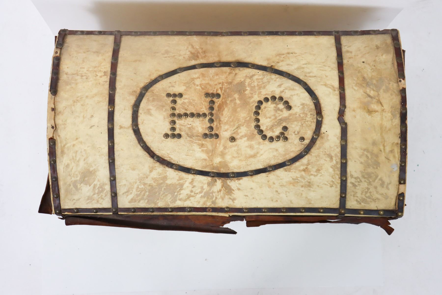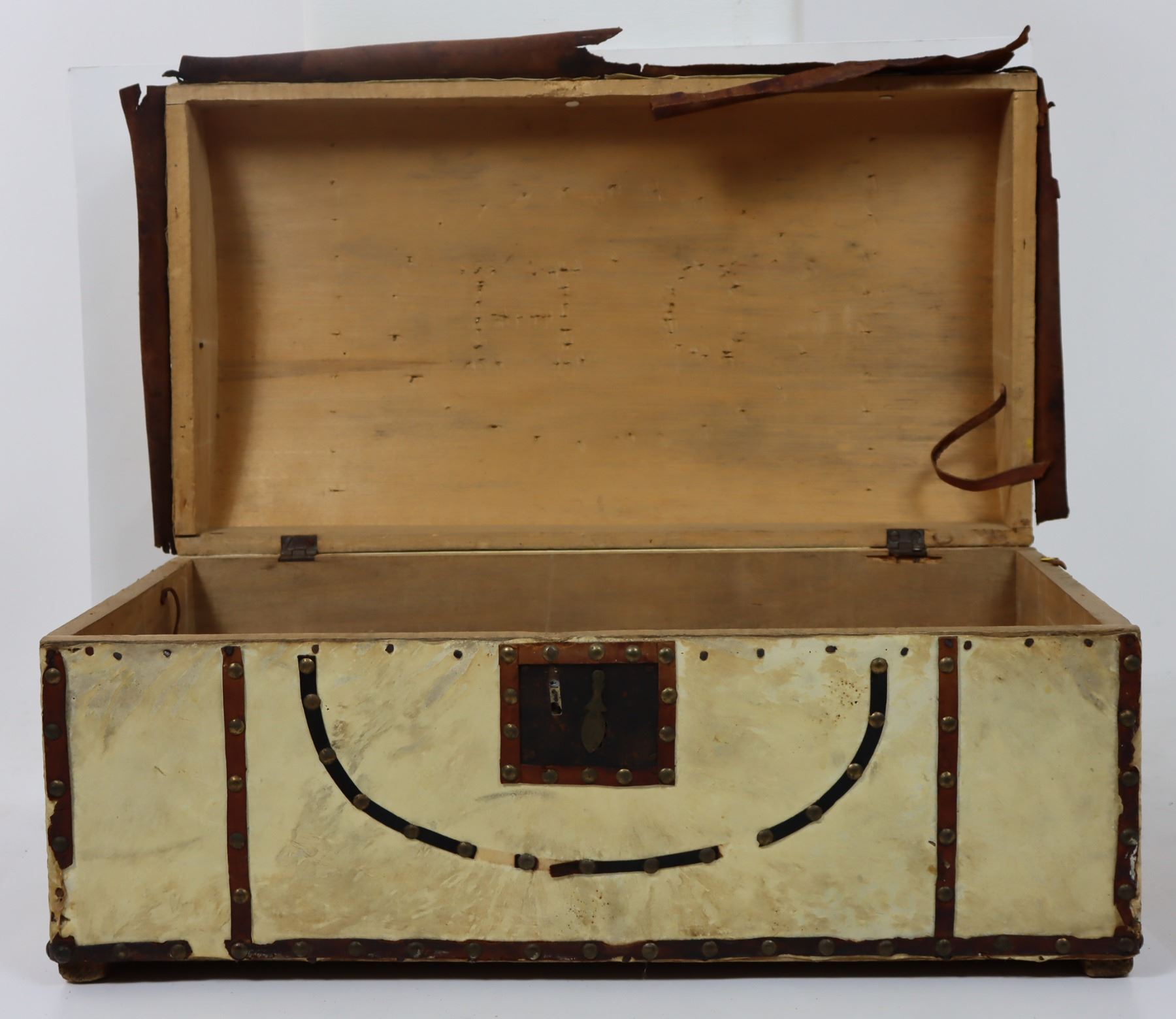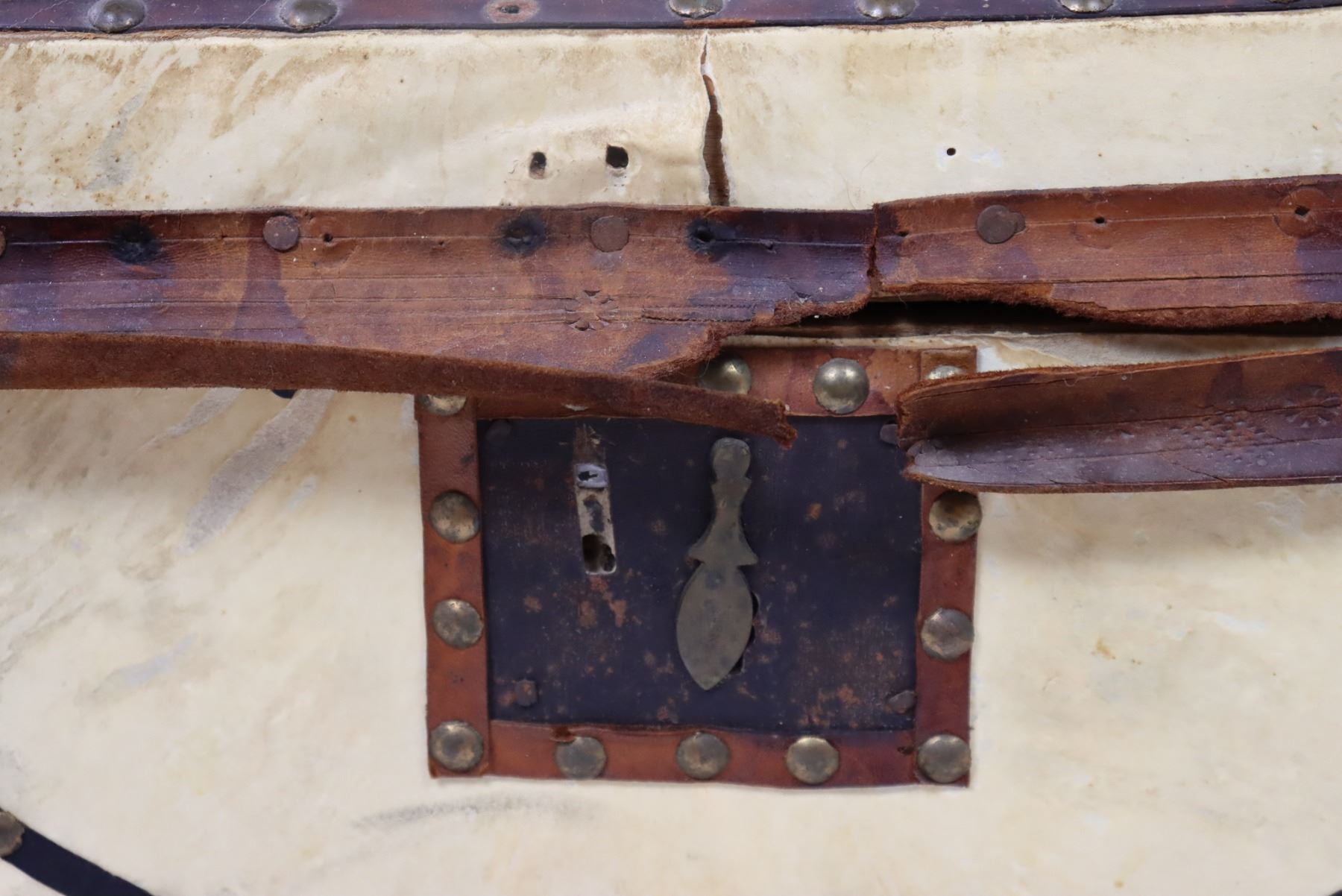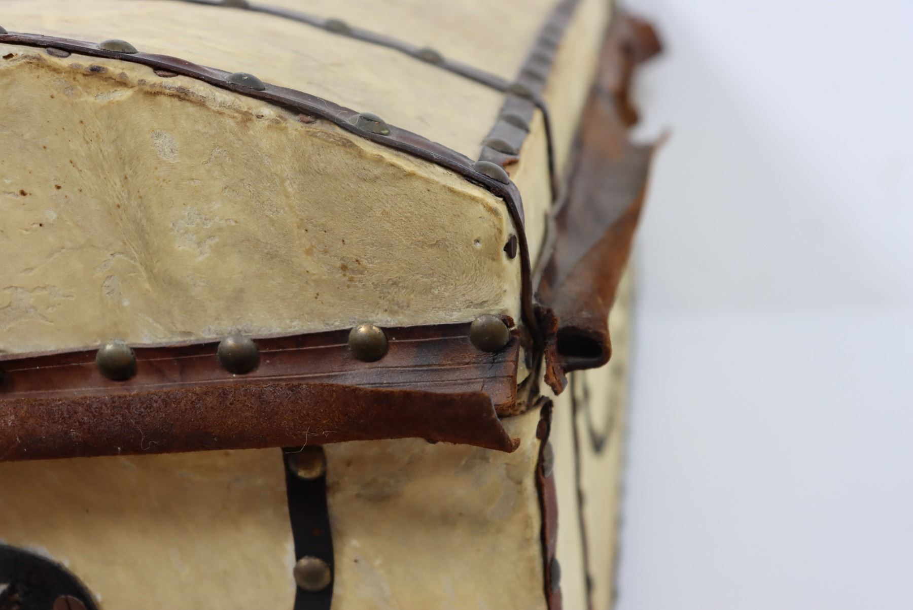 Cowhide can be seen peeling and cracking some areas. Sold as is.