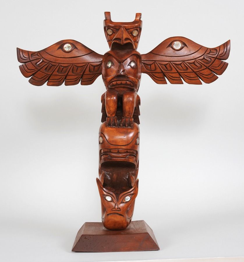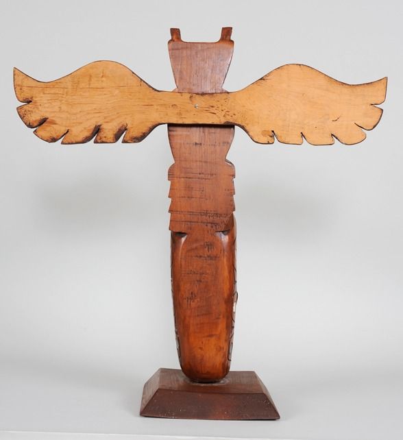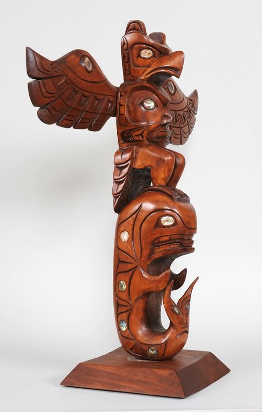 Cowichan Totem with Thunderbird and Whale Carved by Frank Paige 27 1/2" H. 26 1/2" W. Good Condition