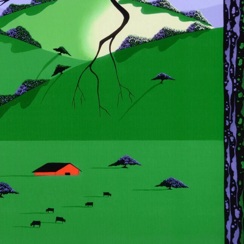 Larissa Holt, a student of distinguished artist Eyvind Earle(1916-2000), uses bold colors and breathtaking scenery to create images of Nature in her own unique style. "Cows Come Home" is a limited edition giclee on stretched canvas by Holt, numbered and bearing Holt's authorized signature. This piece comes gallery wrapped. Includes Certificate of Authenticity! Measures approx. 27" x 21.5" x 1.5" (image).