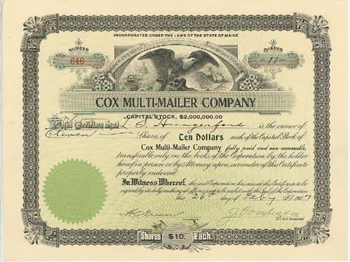 Stock certificates from the United States and other countries around the world. Items offered cover a wide variety of collecting topics including automotive, railroads, mining, autographed and much more.