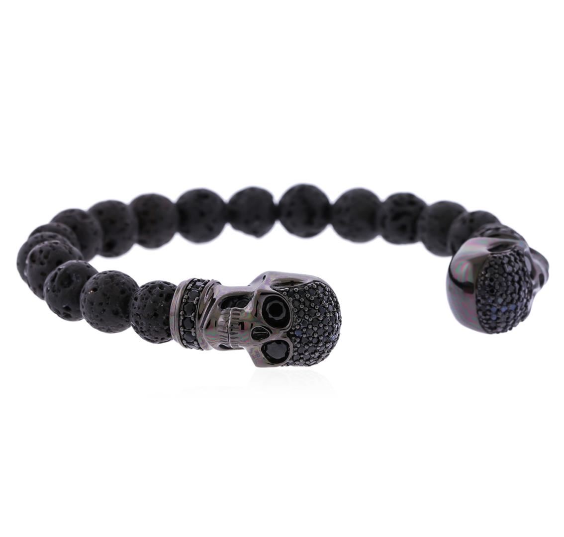 One Cozmo Sterling Silver Black Crystal Skull Cuff Bracelet.