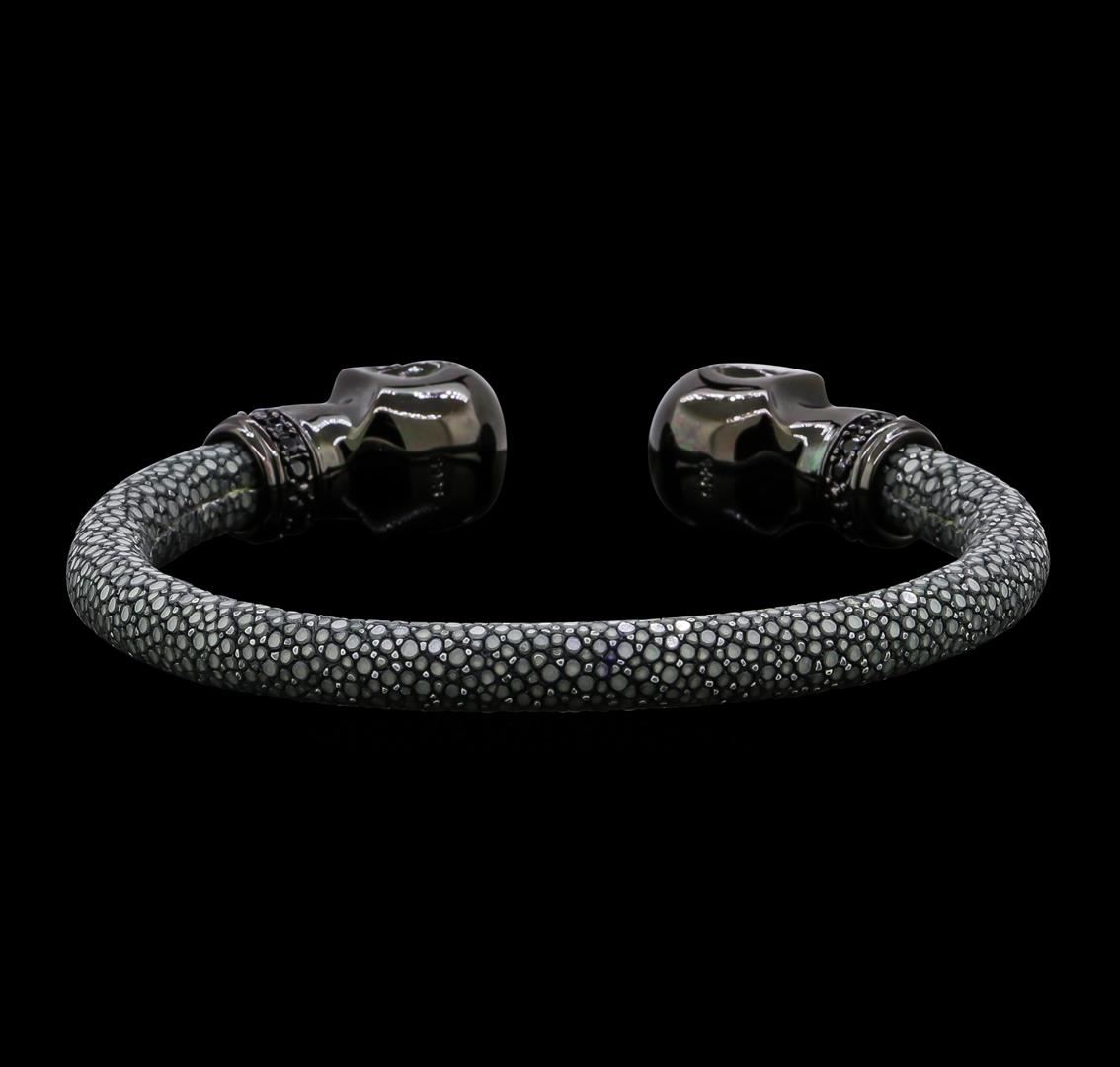 One Cozmo Sterling Silver Crystal Skull Cuff Bracelet.