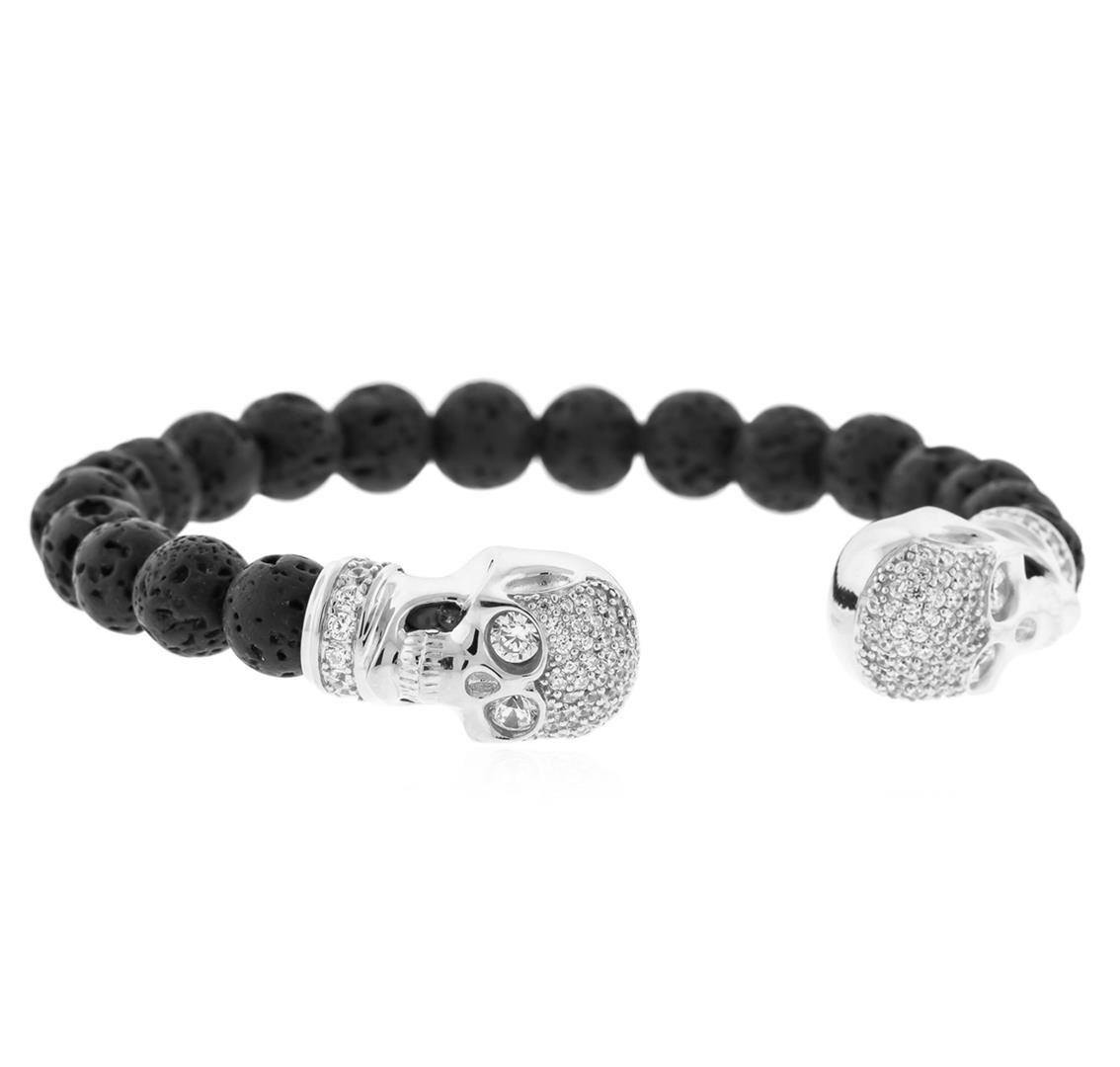 One Cozmo Sterling Silver Cubic Zirconia Skull Cuff Bracelet.