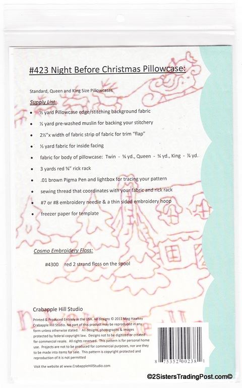Pattern #423 'Night Before Christmas Pillowcase' 2011 design by Meg hawkey for Crabapple Hill Studio.