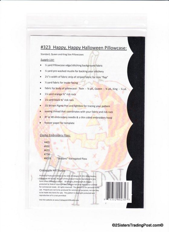 Pattern #323 'Happy, Happy Halloween Pillowcase'. 2011 design by Meg hawkey for Crabapple Hill Studio.