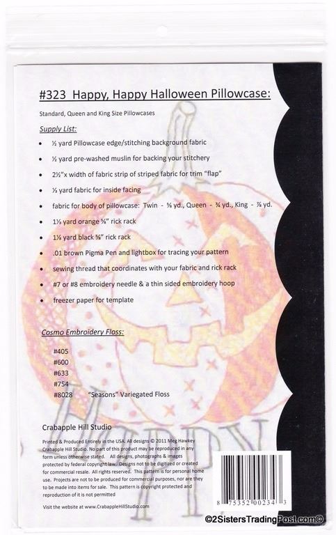 Pattern #323 'Happy, Happy Halloween Pillowcase'. 2011 design by Meg hawkey for Crabapple Hill Studio.