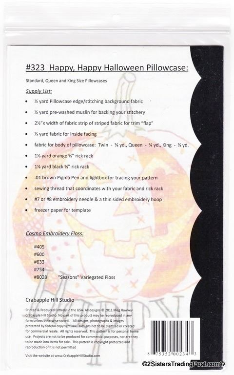 Pattern #323 'Happy, Happy Halloween Pillowcase'. 2011 design by Meg hawkey for Crabapple Hill Studio.