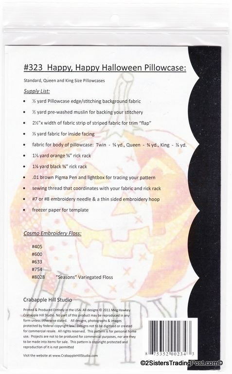 Pattern #323 'Happy, Happy Halloween Pillowcase'. 2011 design by Meg hawkey for Crabapple Hill Studio.