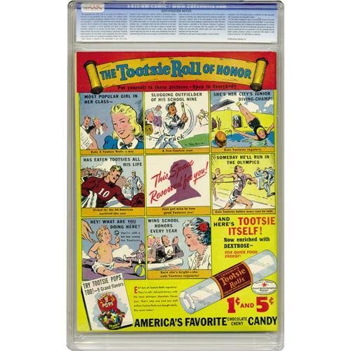 <B>Crack Comics #1 Mile High pedigree (Quality, 1941) CGC NM 9.4 White pages.</B></I> The issue features the origin and first appearance of the Black Condor, one of the earliest winged heroes in comics. His feature has a story by Will Eisner and art by Lou Fine. There's also a slew of other attractions including Madame Fatal, who is a retired actor who fights crime disguised as an old lady! Comic strip gal Jane Arden and the Clock of <B>Feature Comics</B></I> fame appear together on the cover, but in separate features inside the issue. The Mile High copy of this #1 would appear to be impossible to top, at least no copy has equaled it, let alone topped it, in CGC's census to date. Overstreet 2006 NM- 9.2 value = $7,800. CGC census 3/06: 1 in 9.4, none higher.