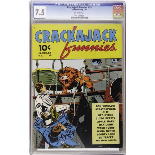 <B>Crackajack Funnies #19 (Dell, 1940) CGC VF- 7.5 Off-white pages.</B></I> Pretty book; currently, the only CGC-certified copy of this issue. Overstreet 2006 VF 8.0 value = $203. CGC census 10/06: 1 in 7.5, none higher.<BR><BR><b>Shipping:</b> Slabbed Comic (<a target="_blank" href="http://www.heritageauctions.com/common/shipping.php">view shipping information</a>)
