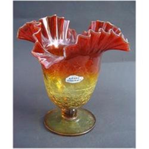 <tr><td>Title:Crackle Glass Amberina Footed Crimped Vase</td></tr>