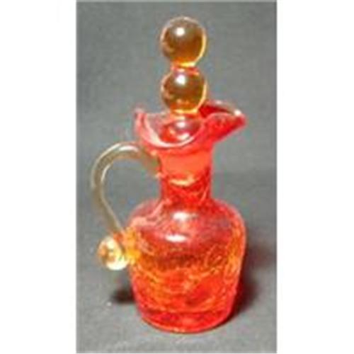 Crackle Glass cruet in amberina. Hand blown with a double ball stopper. Tri-fold spout. Pontil scar. 6 3/4"" tall. No damage.